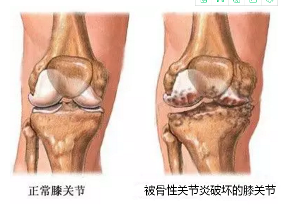 膝关节骨关节炎是老年人最常见疾病之一。尽管事实上患者在X线照片上可出现关节腔变窄、硬化和骨刺,但病人常无症状;反之,也有些病人可有严重症状而放射学改变却很轻。