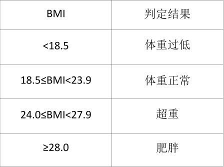注意:对于孕妇、哺乳期妇女、老人及运动员等肌肉比例较高的人,BMI的划分范围不一定适用。