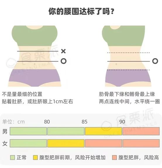 有一个体脂率“平替”指标——腰围。腰围能反映中心性肥胖的程度以及患心脑血管疾病的风险。重视控制腰围,预防腹型肥胖,建议男性腰围不超过85厘米,女性不超过80厘米。