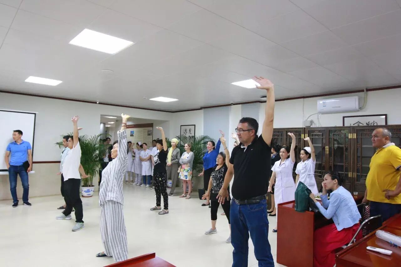 △与针康分院的患者和医护人员一起练习“八段锦”养生操