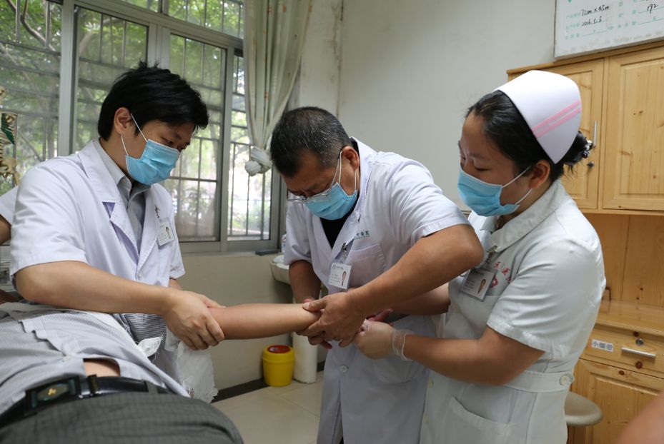 小夹板固定治疗骨折的过程中需要严格的执行相关措施。“小夹板固定需要全程关注,密切观察伤处的肿胀情况及肢端的感觉、活动及血运情况,随时调整夹板松紧度,定期调整固定范围,发现异常要及时处理。”谭官峰主任说,“小夹板更简便更廉价,但是需要医生投入更多的时间和精力,也需要患者积极主动的配合。”