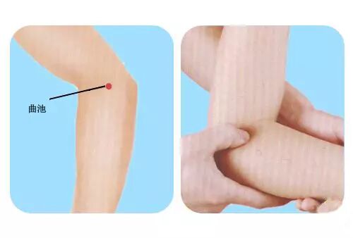 【操作】:用左右手拇指交换按压捻揉左肘曲池50下