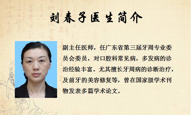 ▲本文作者:刘春子 深圳市宝安中医院(集团)口腔科副主任医师,广东省第三届牙周专业委员会委员。