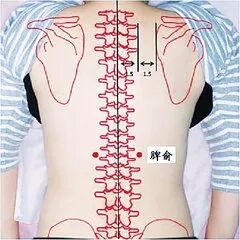 脾俞:在背部,当第11胸椎棘突下,旁开1.5寸;